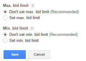 مرحله 5: شما میتوانید از قسمت «Advanced Options» تنظیمات را تغییر دهید، محدودیتهای حداکثر و حداقل پرداخت هزینه را تنظیم کنید (حداکثر و حداقل هزینه هر کلیک در تبلیغات گوگل ادوردز باید در این استراتژی پرداخت تنظیم شود). توصیه میشود که شما حداکثر هزینه را تنظیم کنید. حدود هزینه باید به نحوی باشد که هزینههای جاری شما از این حد تجاوز نکند.