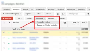مرحله دوم: روی منوی کشویی استراتژی پرداخت «Bid Strategy» کلیک کنید و گزینه تغییر استراتژی پرداخت «Change Bid Strategy» را انتخاب کنید.