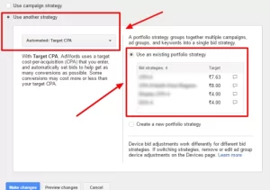 مرحله سوم: یک استراتژی پرداخت هزینه از پیش تعیین شده را انتخاب کنید و روی کمپینها یا گروههای تبلیغاتی انتخابی خود اعمال کنید.