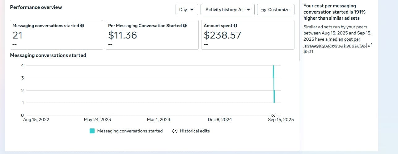 - میانگین هزینه هر پیام: 13.51 دلار (هزینه بالاتر از حد میانگین)