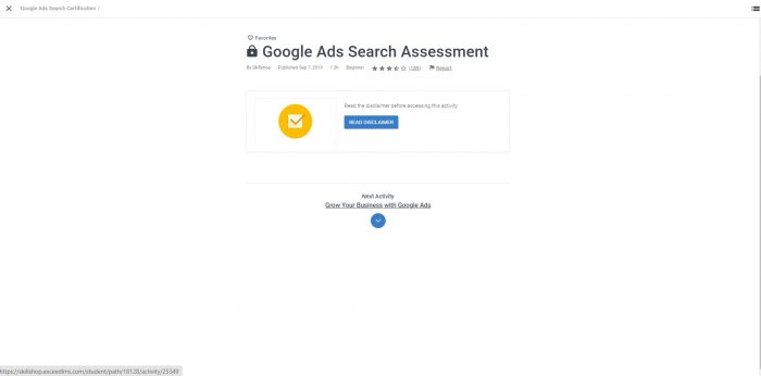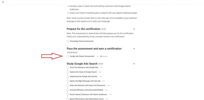 روی گزینه ی Google Ads Search Certification کلیک کنید