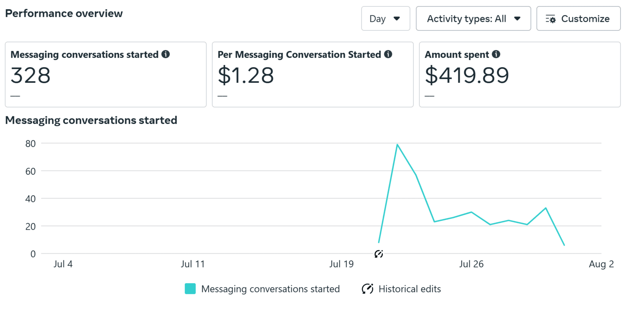 | صرفهجویی در بودجه | $160 (۲۵٪) | عالی. کمپین به اهداف خود رسید و ۲۵٪ از بودجه را ذخیره کرد. |