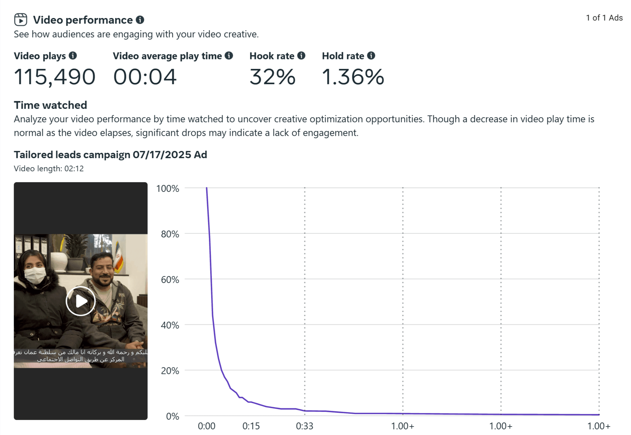 - کپشن (Ad Copy): متنی احساسی و امیدبخش به زبان عربی انتخاب شد تا مستقیماً با زوجهایی که در مسیر درمان ناباروری قرار دارند، ارتباط برقرار کند.