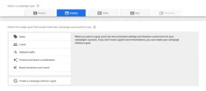 یک هدف را انتخابکنید. باتوجه به نوع کمپینی که انتخاب میکنید، اهداف مختلفی به شما پیشنهاد داده میشود. برای مثال شما میتوانید گزینه فروش و یا گزینه هدایت و یا گزینه ترافیک وبسایت را انتخابکنید. فرض میکنیم که شما گزینه ترافیک وبسایت را انتخاب کردهاید.