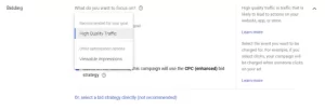 سپس باید نام کمپین خود، شبکههای انتخابی، موقعیت، زبان، مخاطب هدف، بودجه و نوع پیشنهادات را انتخابکنید. برای مثال برای افزایش ترافیک وبسایت به شما توصیه میکنیم که گزینه high-quality traffic or viewable impressions را انتخابکرده و بعدا هم یک پیشنهاد خوب را به آن اضافهکنید.