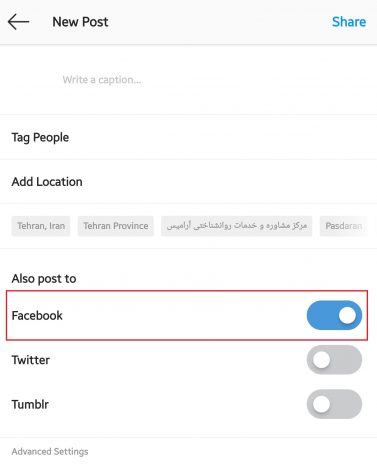 شما باید پستی را که قصد منتشر کردن در پیج اینستاگرام را دارید در فیس بوک نیز به اشتراک بگذارید.
