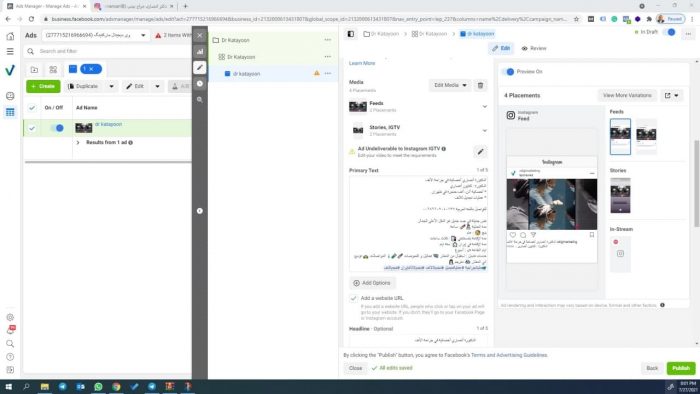 نکته بسیار مهم در تبلیغات ویدئویی و تصویری فیسبوک و اینستاگرام سایز محتواست. فیسبوک در پنل تبلیغاتی خود به حداقل سایز ویدئو و عکس ها اشاره کرده که باید حداقل بالای 500px باشند