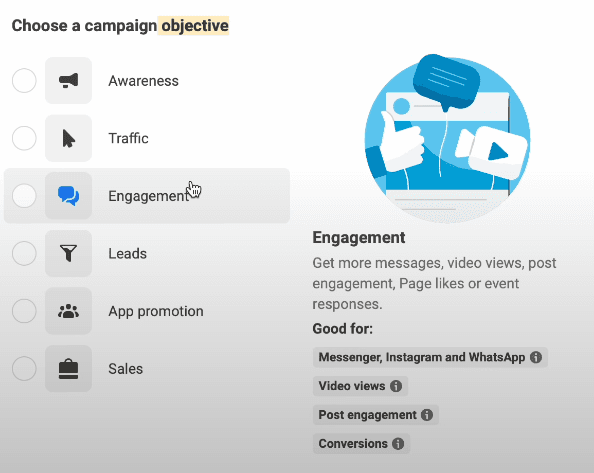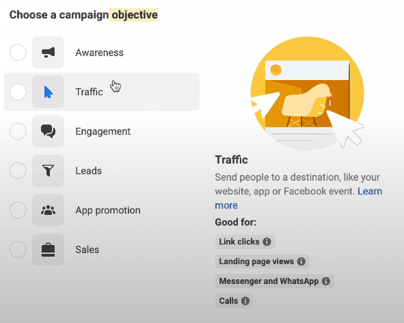 در این مرحله، باید از بین ۶ گزینه موجود، هدف و نوع کمپین خود را مشخص کنید: