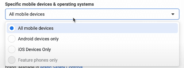 •انتخاب دستگاهها: تبلیغات برای Android، iOS یا نسخههای خاص از این سیستمعاملها.