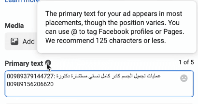•Primary Text: متن اصلی آگهی (ترجیحاً ۱۲۵ کاراکتر یا کمتر). سعی کنید این متن به جذابترین حالت ممکن و حتما به زمان لوکیشن تارگت شما باشد.