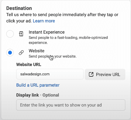 •بودجه کمپین (بهصورت Daily Budget یا Lifetime Budget).