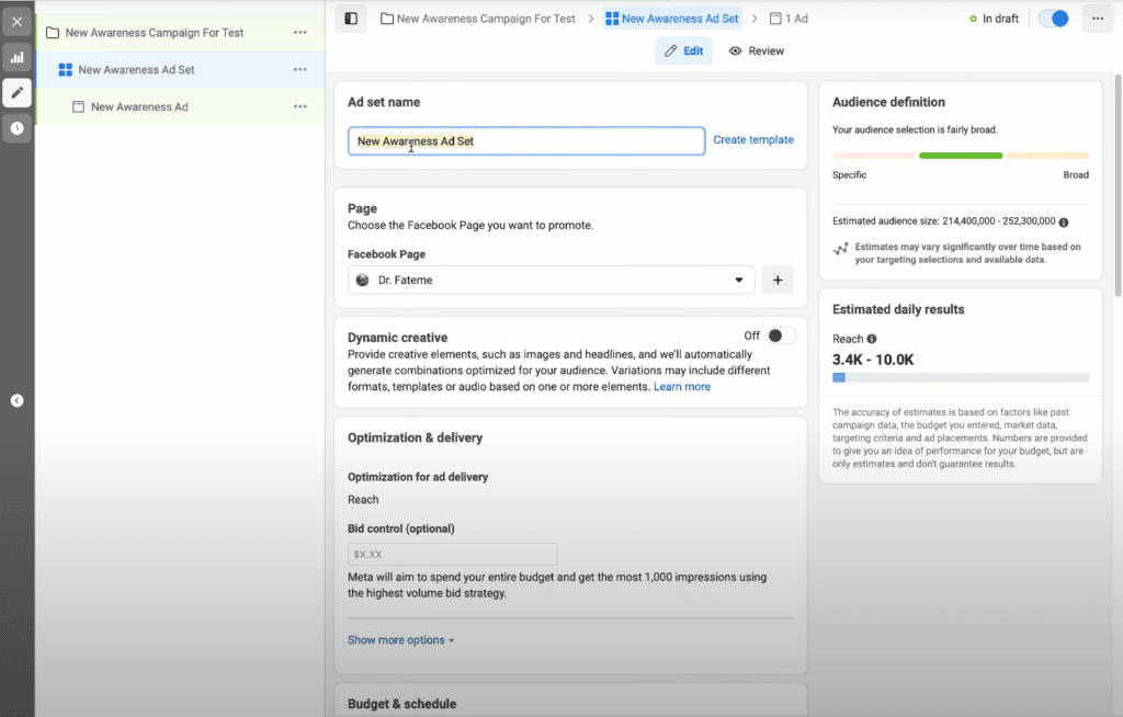 Ad Set مانند Ad Group در گوگل ادز عمل میکند. در این بخش: