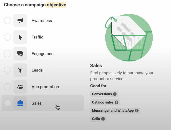 Sales: کمپین فروش (نیازمند نصب پیکسل و ادغام با سرویسهایی مثل Shopify).